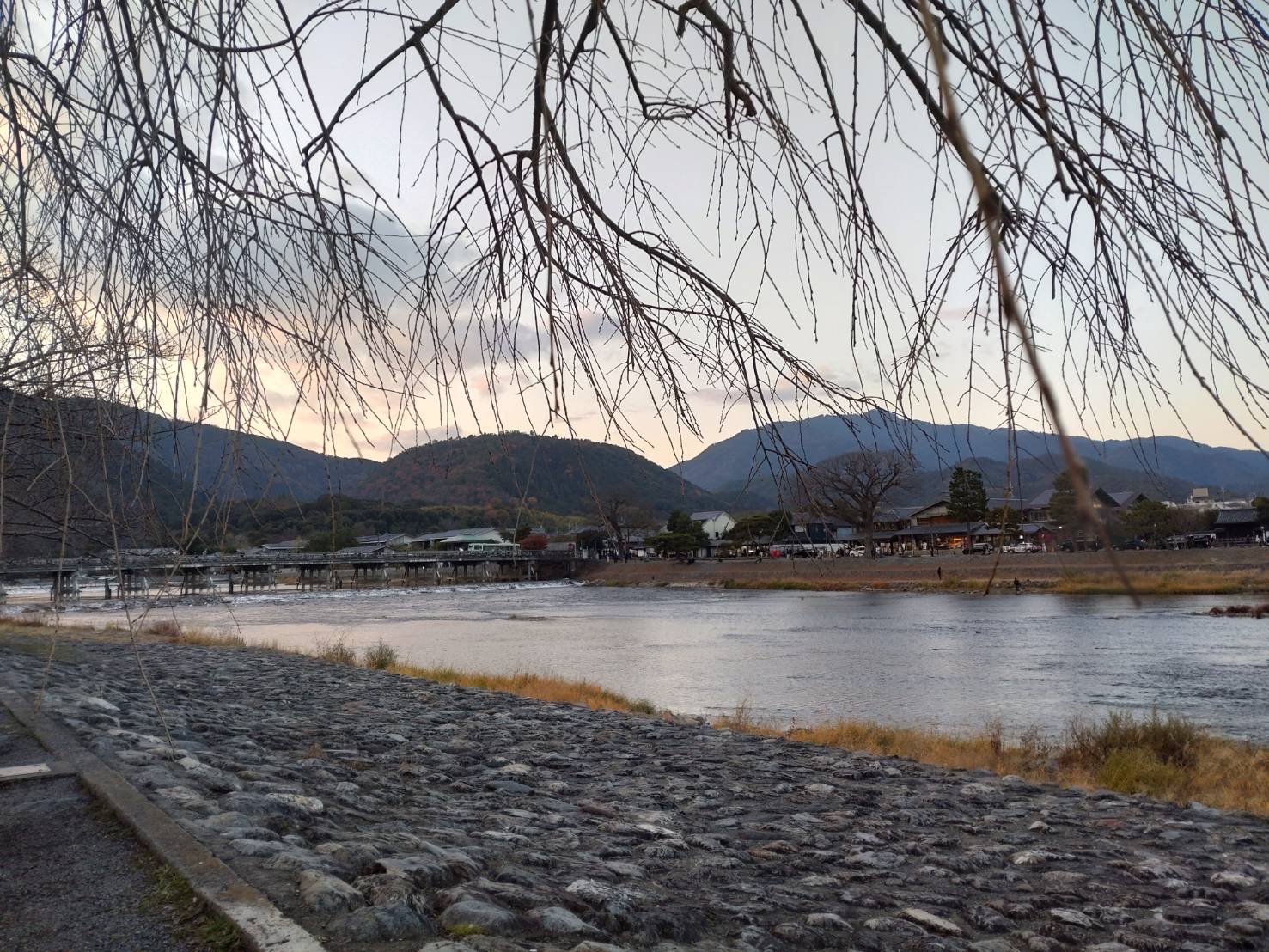お花も咲いていない、紅葉も終わりですが桂川と山並みの静かな景色が美しいです。