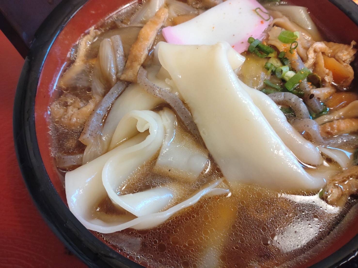 A local specialty of Gunma Prefecture, okkirikomi is a hearty dish made by simmering extra-wide himokawa noodles—thicker than regular udon—together with vegetables and other ingredients.